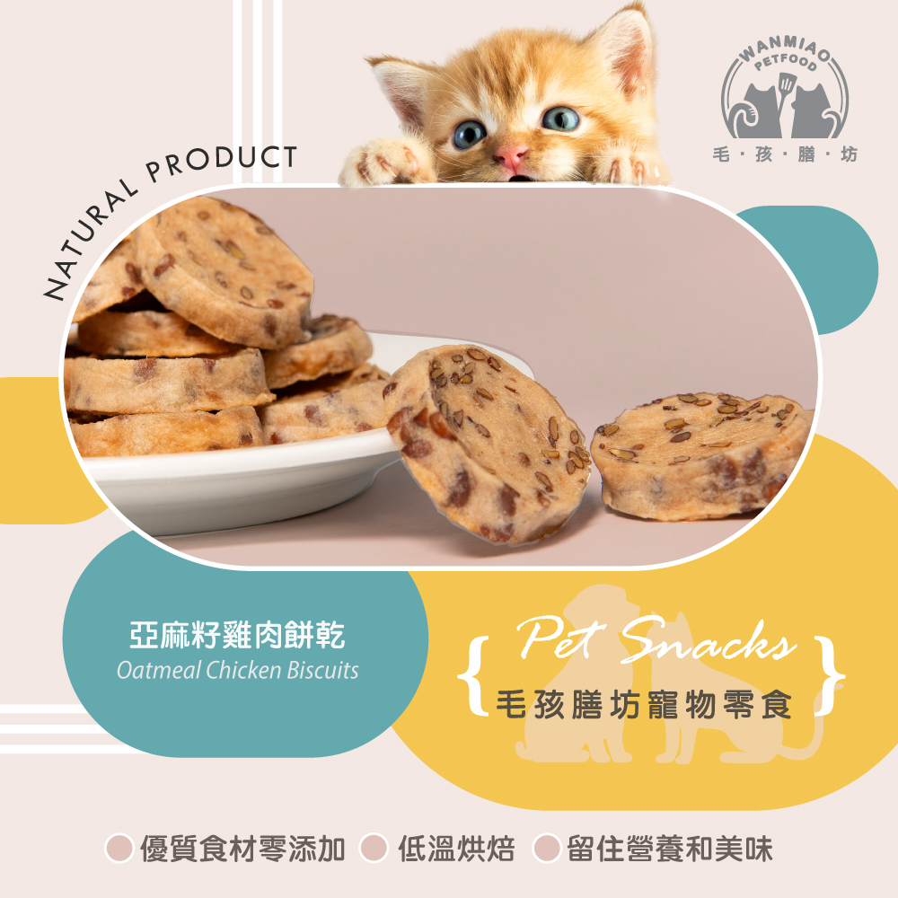 【毛孩膳坊】烘乾寵物零食-亞麻籽雞肉餅乾50g-5包入(開封即食/常溫保存/寵物零食)