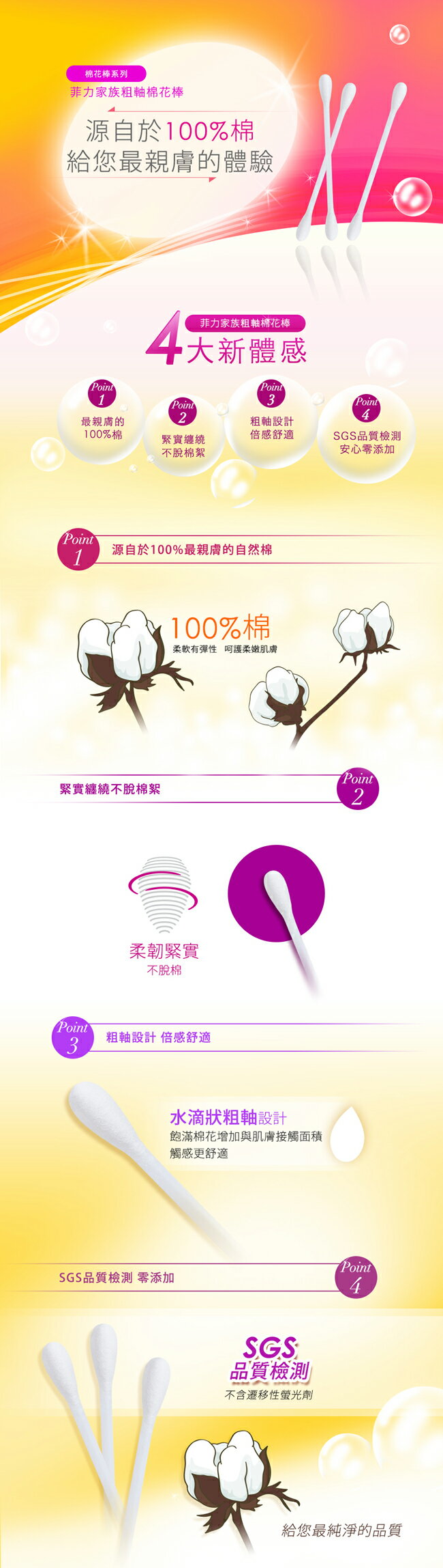 菲力家族粗軸棉花棒100支*6包/組 2
