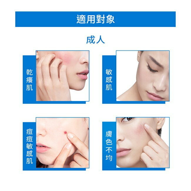 商品簡述 改善3大敏感肌問題 : 乾癢泛紅、膚色不均、痘痘瑕疵