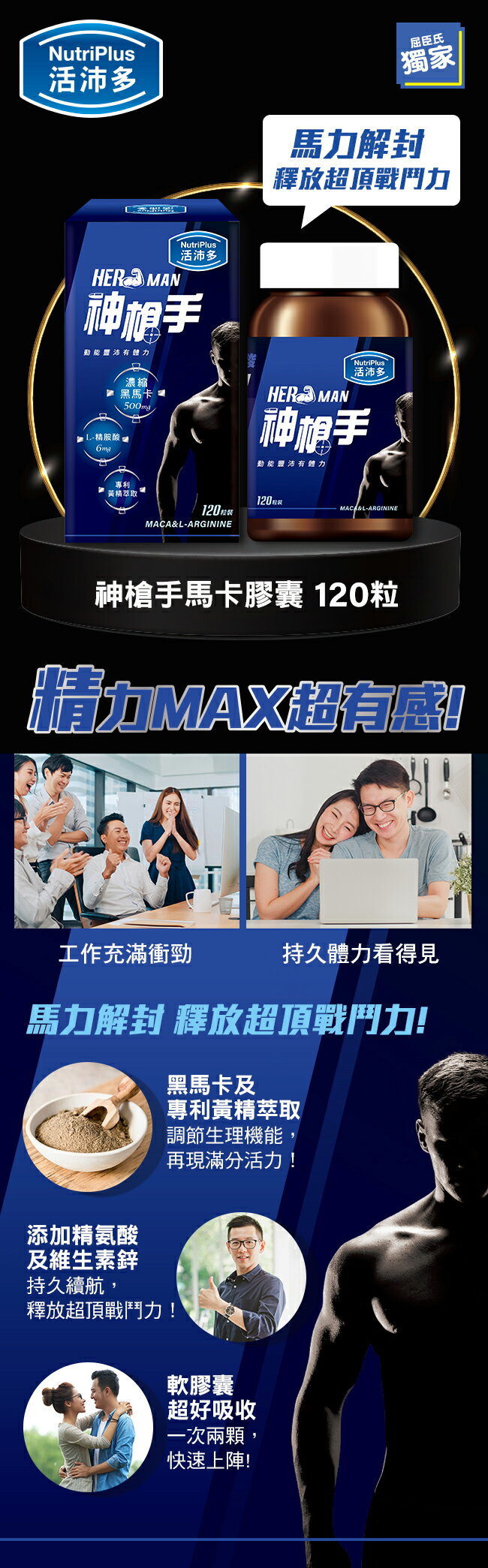 商品簡述: 活沛多 神槍手馬卡膠囊120粒專屬男性戰力補給動能豐沛有體力