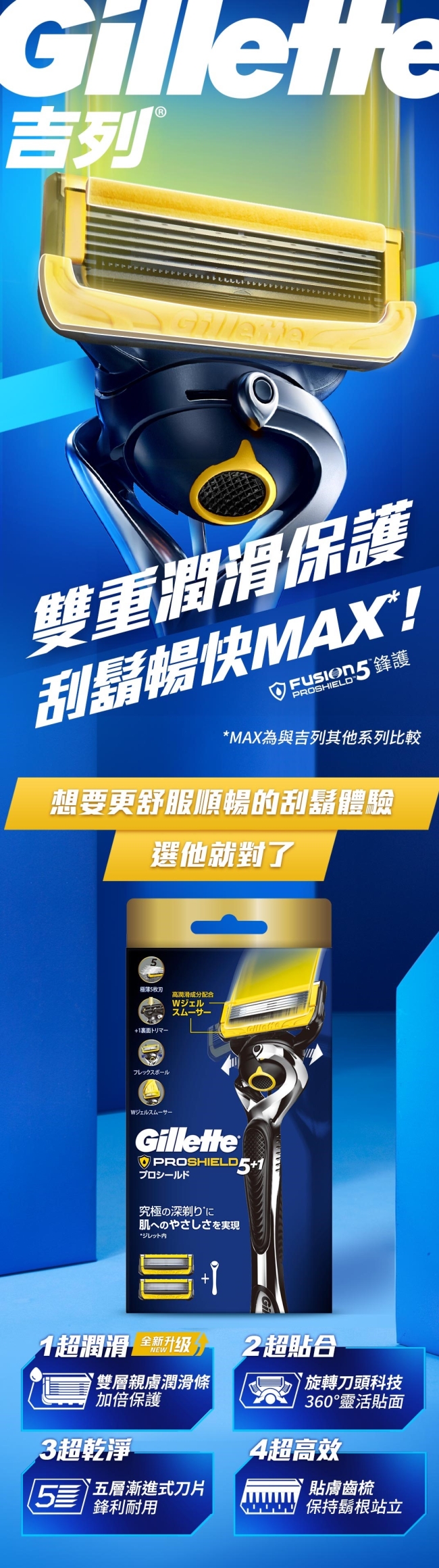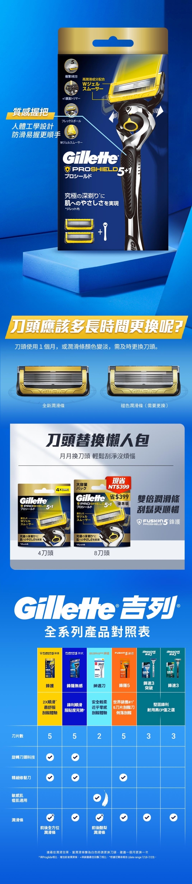 商品簡述 吉列Proshield鋒護系列刮鬍刀 (1刀架2刀頭)