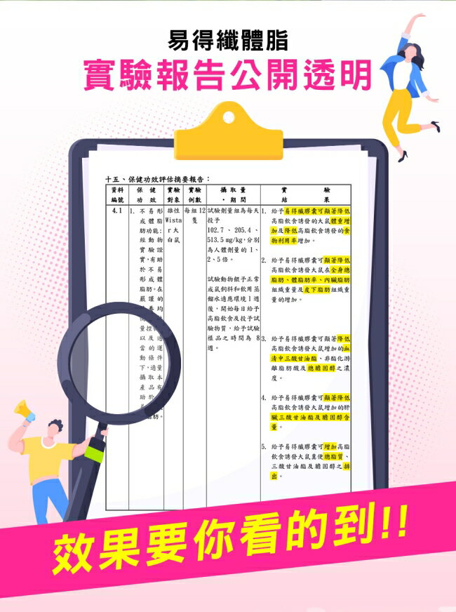 不易形成體脂肪;經動物實驗結果:有助於不易形成體脂肪。