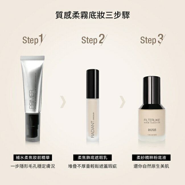 柔紗精粹粉底液,帶給你完美底妝體驗!輕薄質地融入肌膚,呈現無瑕妝感。