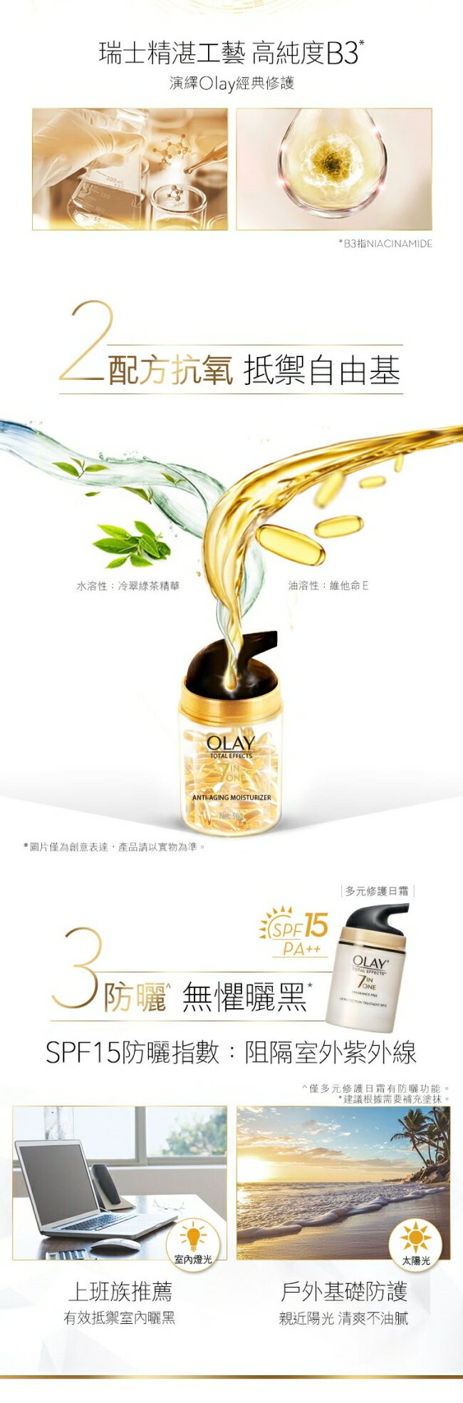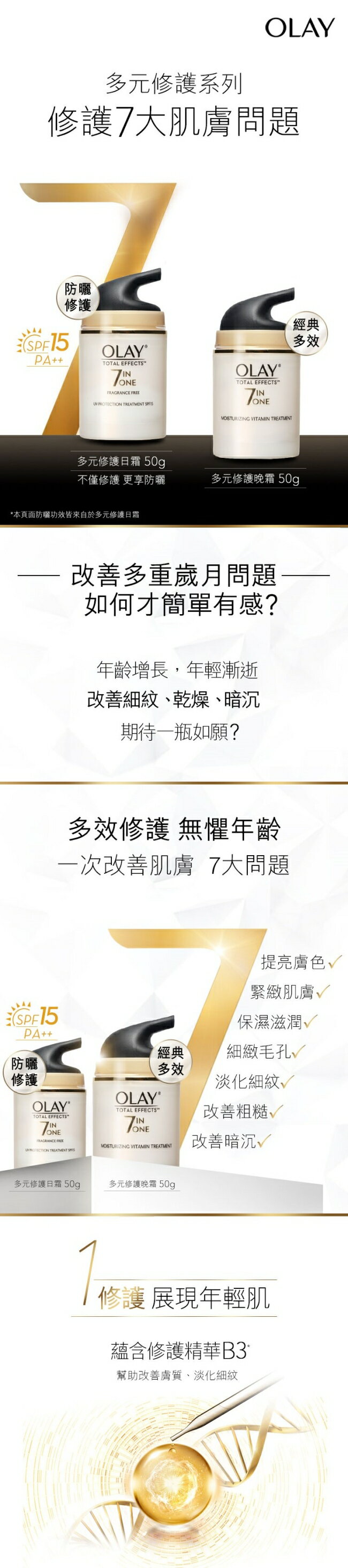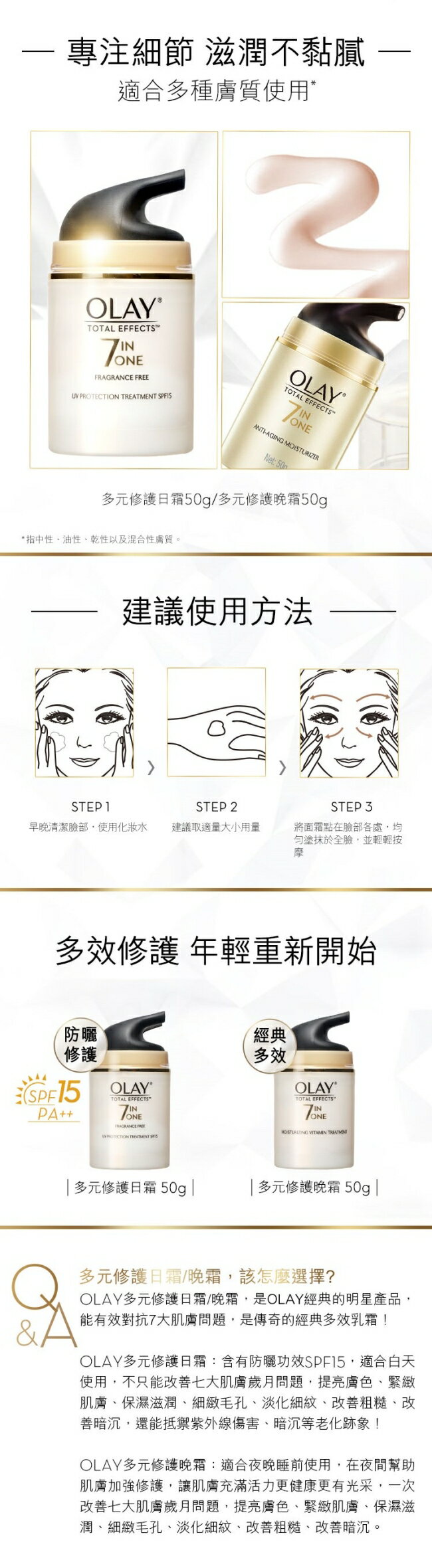 建議與OLAY多元修護系列產品配合使用,以達到理想肌膚,幫助同步對抗7大肌膚問題