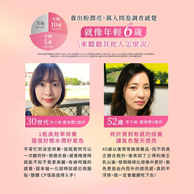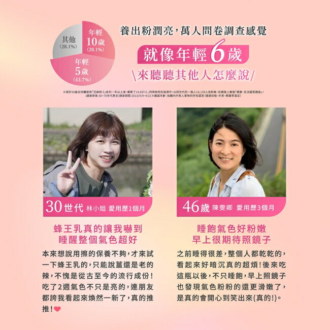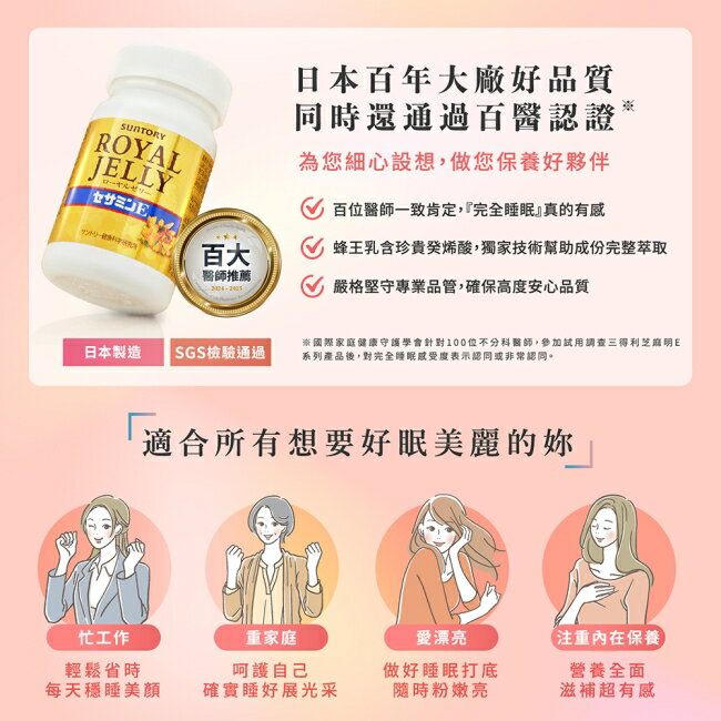 商品簡述 1. 蜂王乳 + 芝麻明E,由內滋補調理 外在顯年輕。2. 日本獨家芝麻明,幫助入睡青春喚活。