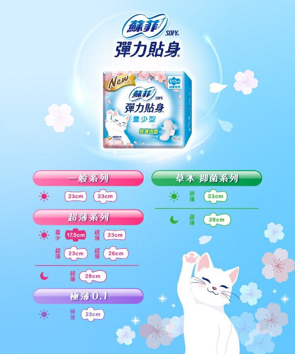 蘇菲 彈力貼身量少潔翼衛生棉17.5cm 16片(蘇菲衛生棉)- 新舊包裝隨機出貨