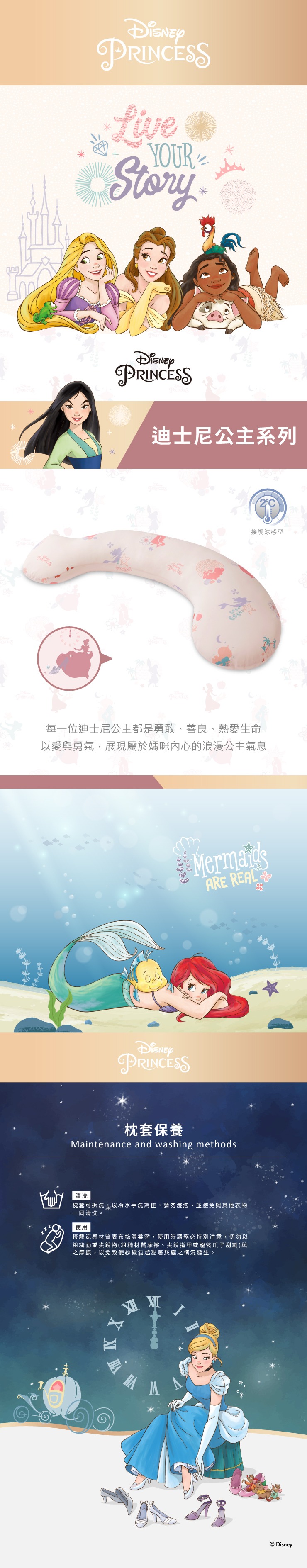 Hugsie 涼感迪士尼孕婦枕-迪士尼公主【舒棉款/防蟎款】【一般尺寸Normal】★衛立兒生活館★