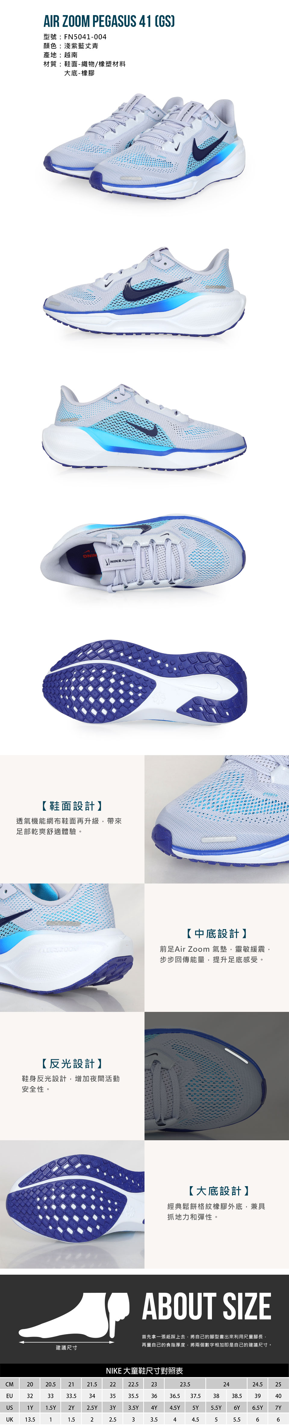 NIKE AIR ZOOM PEGASUS 41(GS)男大童氣墊緩震慢跑鞋「FN5041-004」≡排汗專家≡