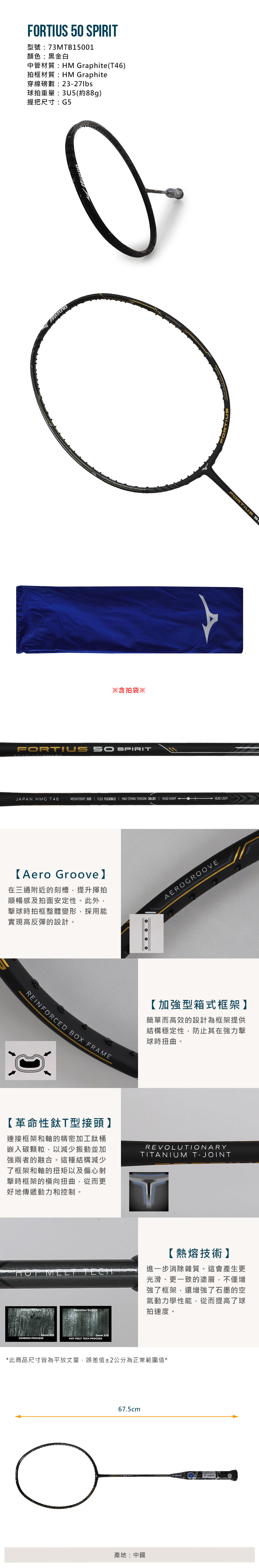 MIZUNO FORTIUS 50 SPIRIT 羽球拍(免運 空拍 含拍袋「73MTB15001」≡排汗專家≡