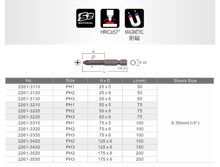 WIGA 威力鋼 1/4"(6.35MM)穴用十字起子頭(十支裝)