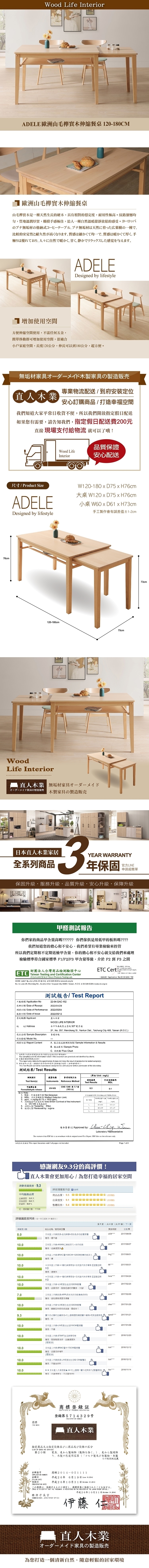 【直人木業】ADELE歐洲山毛櫸全實木伸縮餐桌120-180公分|TOP|#APP結帳再賺4%點數#熱門收藏家具