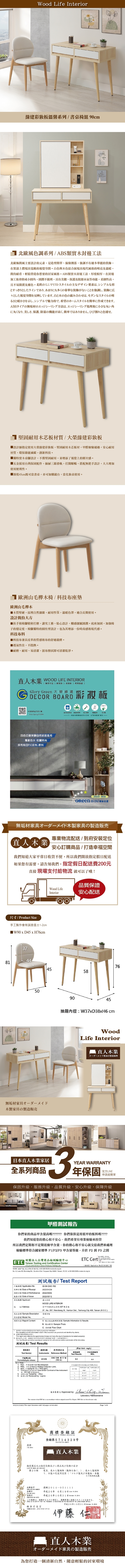 【直人木業】綠建彩妝板溫馨系列/書桌椅組90cm