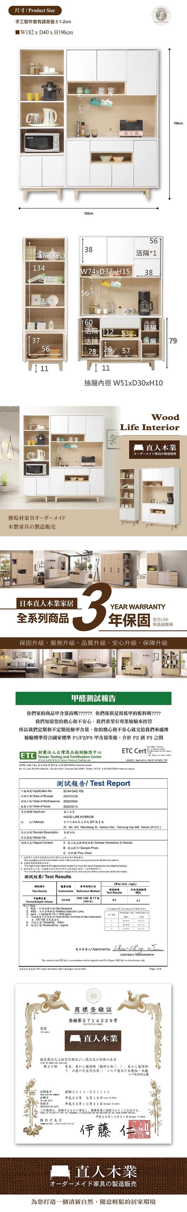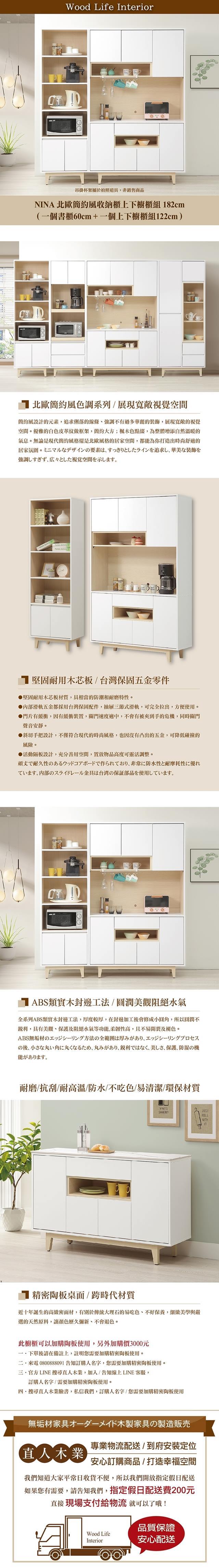 【直人木業】NINA北歐簡約風電器櫃上下櫥櫃組182公分(一個書櫃60公分+一個上下櫥櫃組122公分)