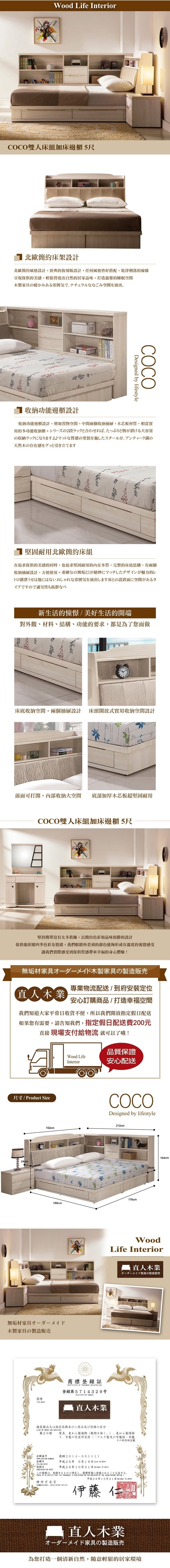 COCO白橡5尺床組加床邊櫃|日本直人木業家具限定優惠首選推薦,床組全系列MIT台灣製作品質保證,提供平、假日安心配送到府組裝服務,日系、簡約、北歐、工業...多種床組風格家具任選搭配出溫潤舒適的質感居家,穩固設計結構木作家具,採用符合國家標準低甲醛板料製作床組,讓您居家煥裝打造更安心。