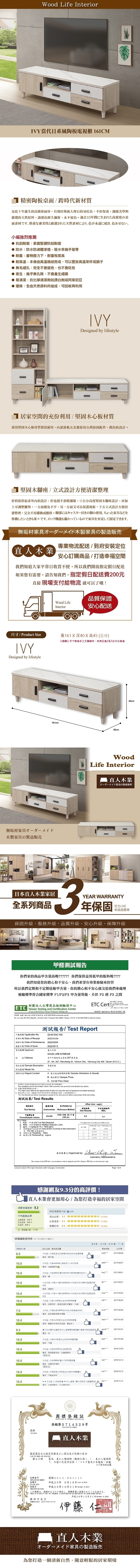 IVY當代日系風161公分陶板電視櫃|日本直人木業家具限定優惠首選推薦,電視櫃全系列MIT台灣製作品質保證,提供平、假日安心配送到府組裝服務,日系、簡約、北歐、工業...多種電視櫃風格家具任選搭配出溫潤舒適的質感居家,穩固設計結構木作家具,採用符合國家標準低甲醛板料製作電視櫃,讓您居家煥裝打造更安心。