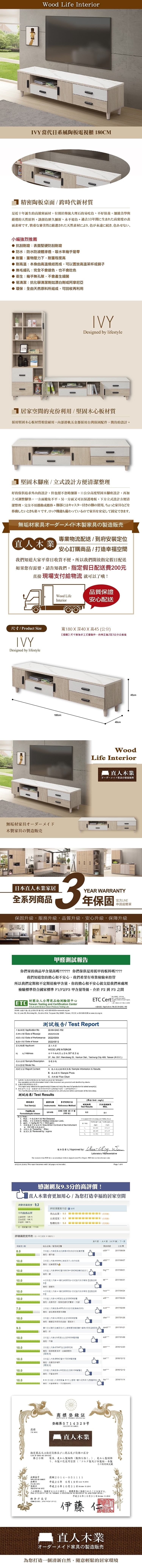 IVY當代日系風180公分陶板電視櫃|日本直人木業家具限定優惠首選推薦,電視櫃全系列MIT台灣製作品質保證,提供平、假日安心配送到府組裝服務,日系、簡約、北歐、工業...多種電視櫃風格家具任選搭配出溫潤舒適的質感居家,穩固設計結構木作家具,採用符合國家標準低甲醛板料製作電視櫃,讓您居家煥裝打造更安心。
