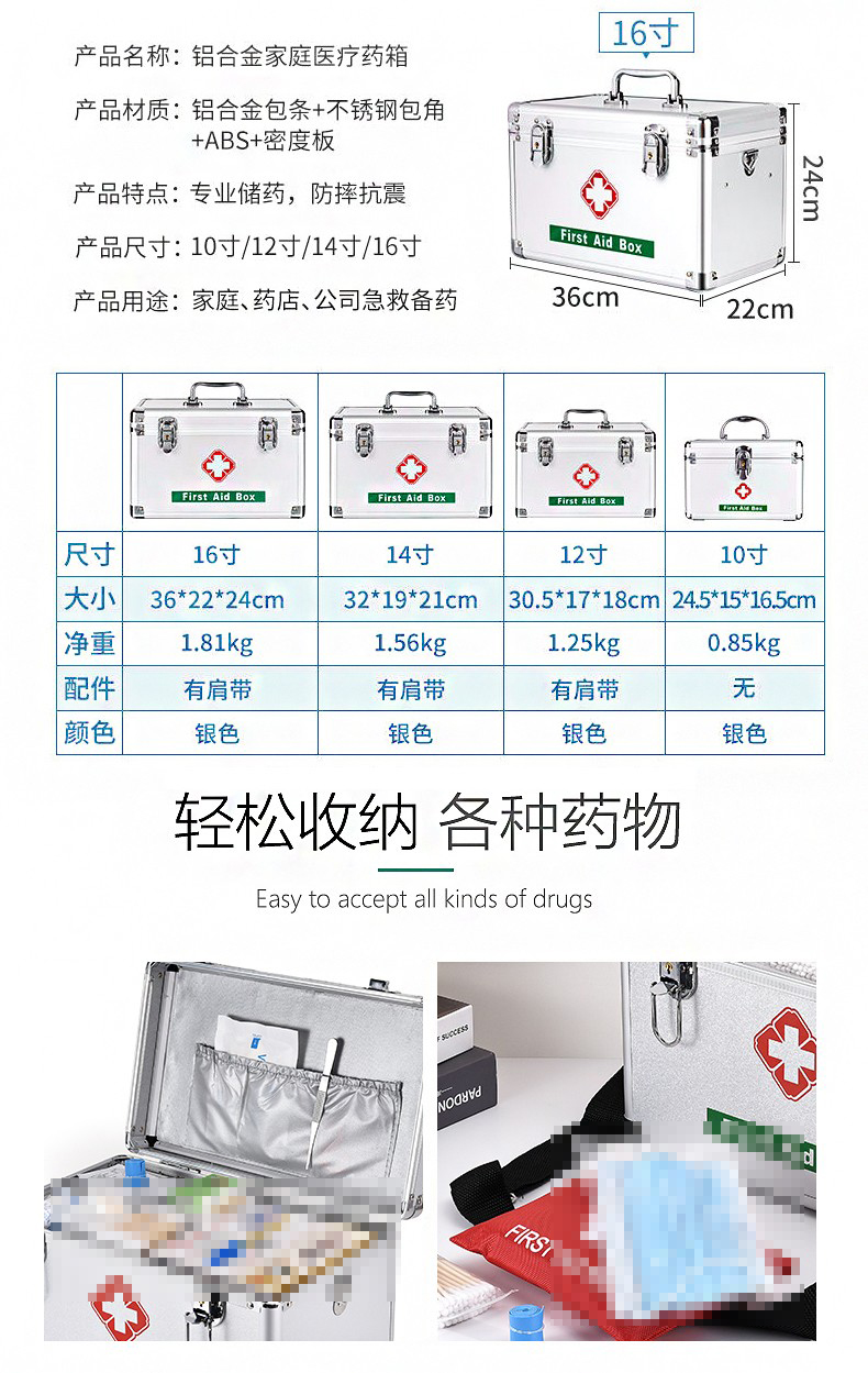 醫藥箱 急救箱 家用藥箱 醫藥箱鋁合金家用藥品收納盒家庭應急急救箱工廠醫療箱醫生出診箱【MJ21617】