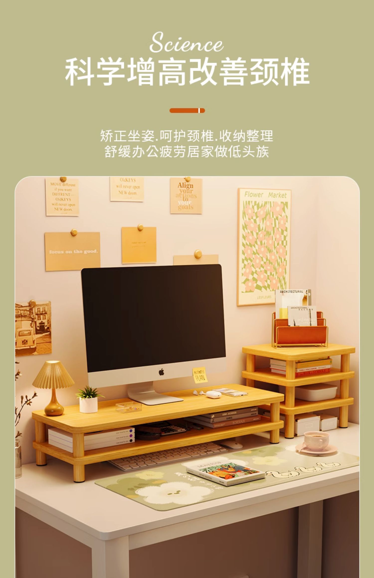 實木熒屏增高架