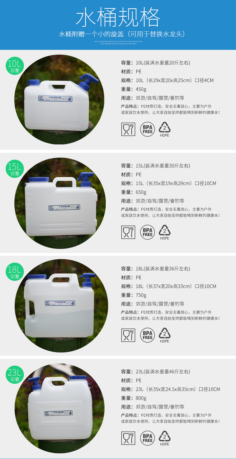 戶外水桶 戶外水桶車載純凈飲用水桶礦泉裝水桶帶蓋家用手提儲水箱PE自駕游【MJ19580】
