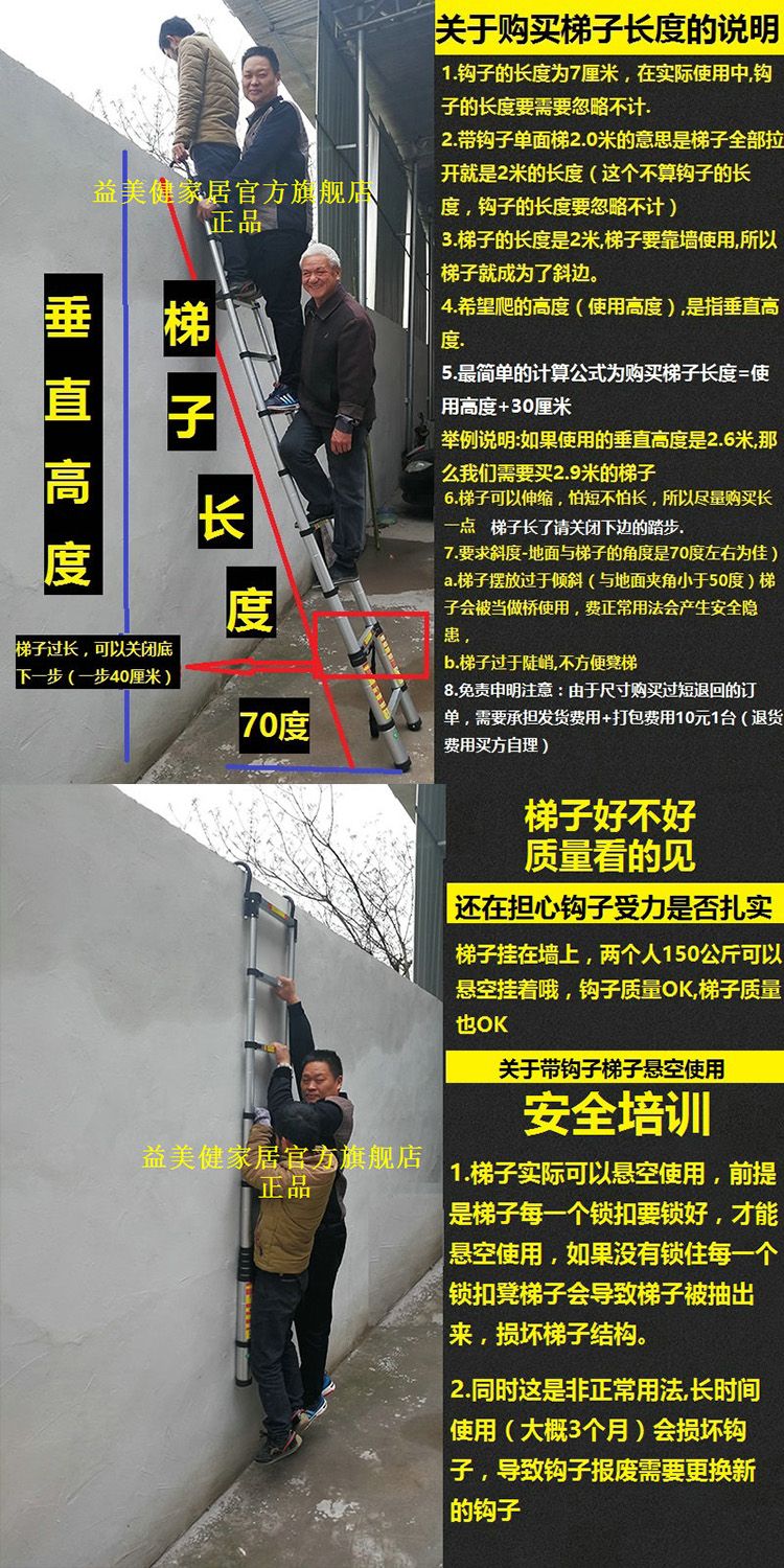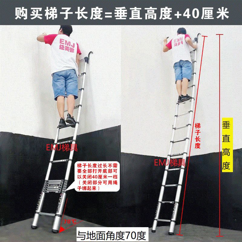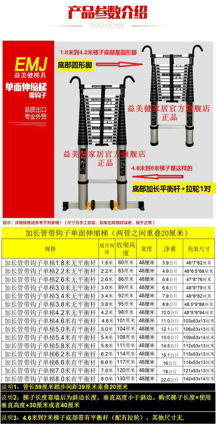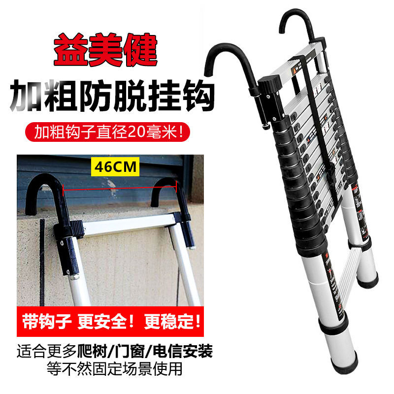 5. 【新店鉅惠】益美健特高加固1米到8米帶鉤子單面一字伸縮梯家用升降樓梯工程梯