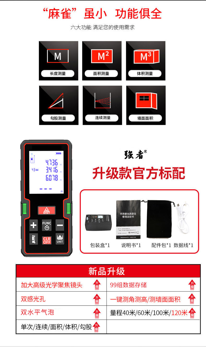 5. 【新店鉅惠】強者激光測距儀高精度手持紅外線測量尺電子尺激光尺子量房儀神器