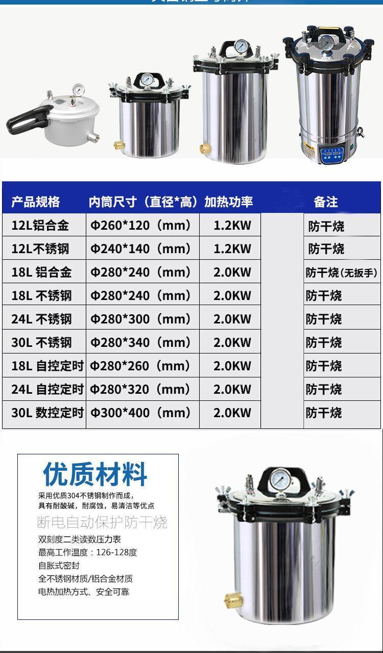5. 【最低價】【公司貨】壓力蒸汽滅菌器小型不銹鋼高壓滅菌鍋電立式數顯全自動消毒鍋
