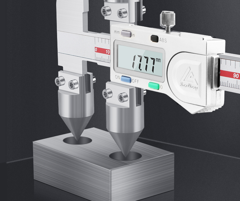 5. {公司貨 最低價}日本三量邊心距中心距數顯卡尺圓錐測頭孔距中心線卡尺邊到孔測量