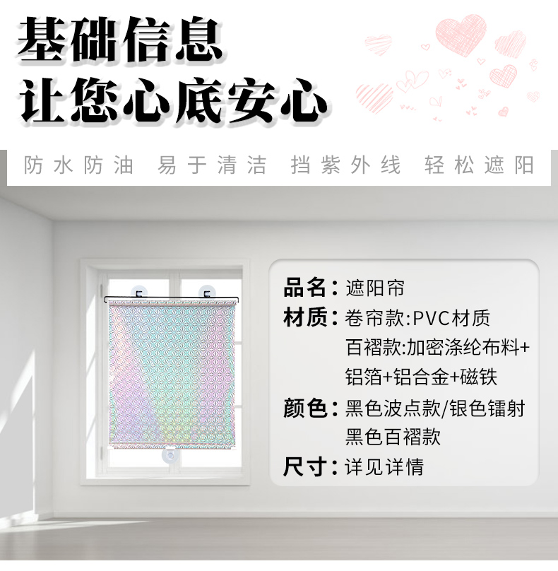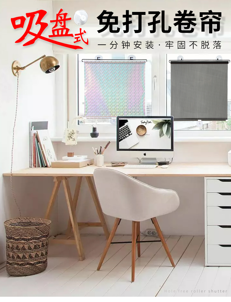 防水捲簾 遮光捲簾 免打孔吸盤伸縮遮陽簾家用遮陽卷簾窗簾防曬陽台小窗戶廚房遮擋簾『xy4553』 1