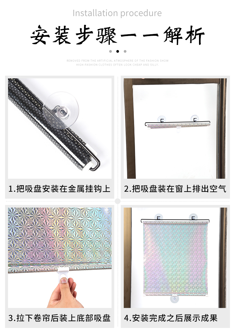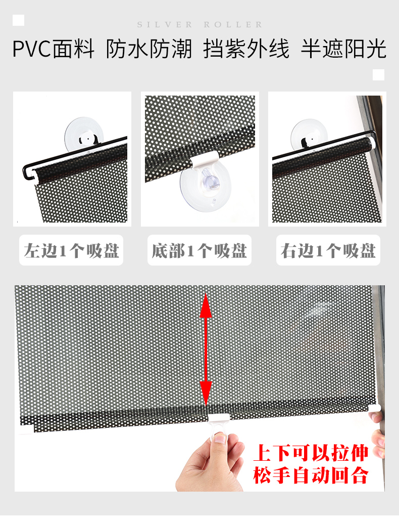 防水捲簾 遮光捲簾 免打孔吸盤伸縮遮陽簾家用遮陽卷簾窗簾防曬陽台小窗戶廚房遮擋簾『xy4553』 4