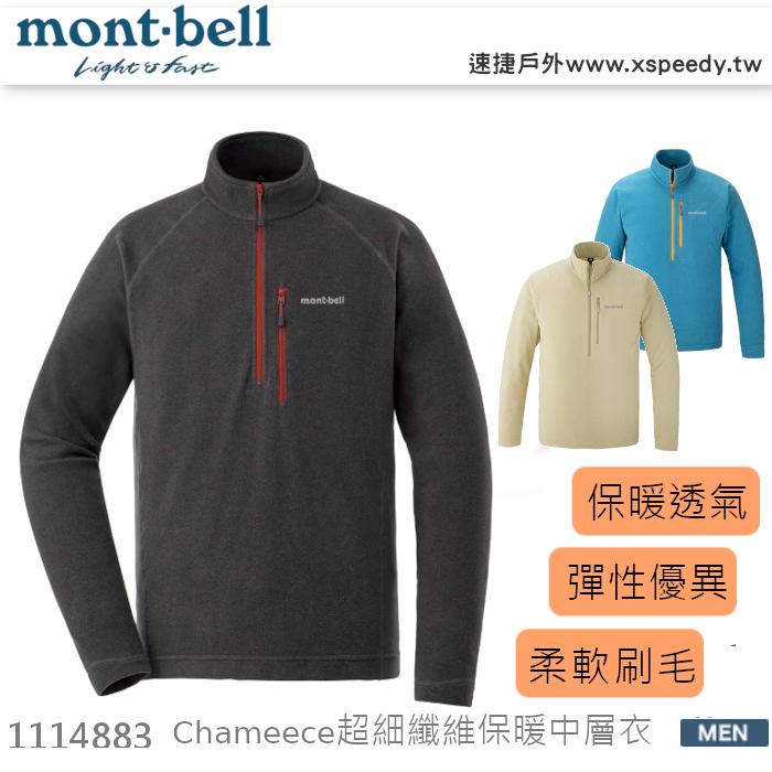 【速捷戶外】日本 mont-bell 1114883 CHAMEECE 男彈性超細保暖刷毛中層衣,登山,健行,montbell