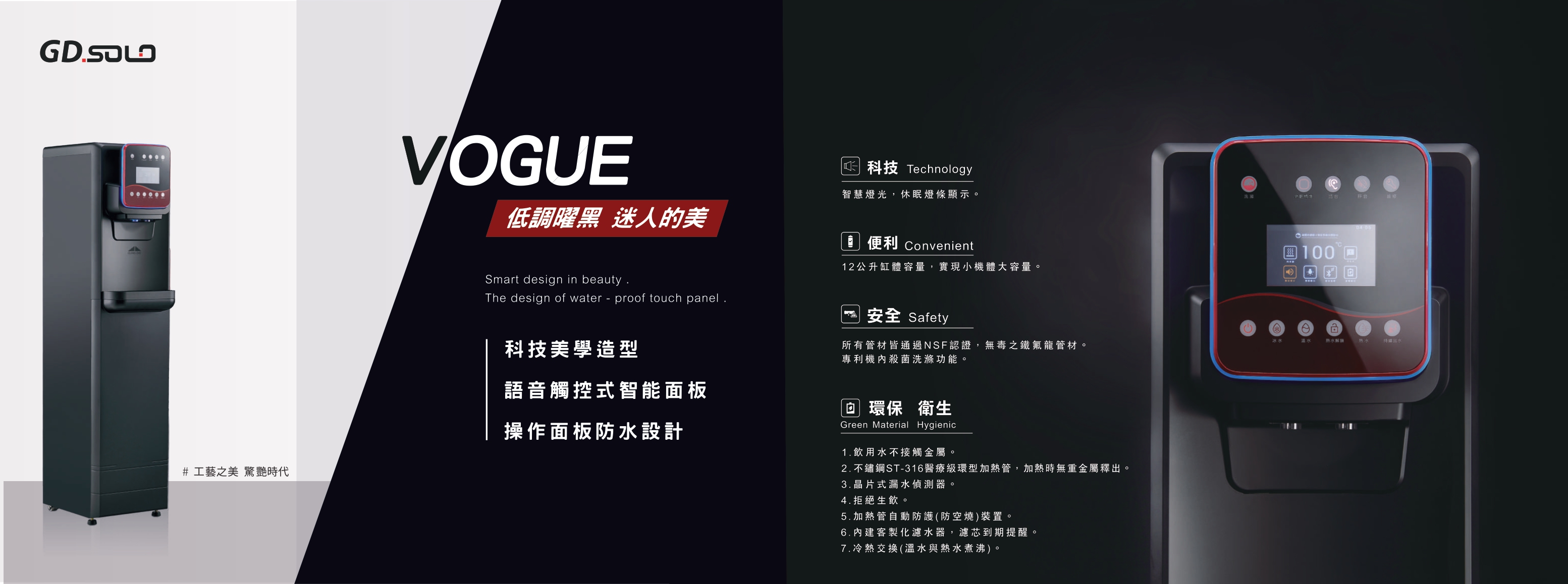 6. 【宮黛 GUNGDAI 】GD SOLO 全智慧美學落地型飲水機 ( 冰/溫/熱 ))搭配原廠【居家防護】GD三道淨水器