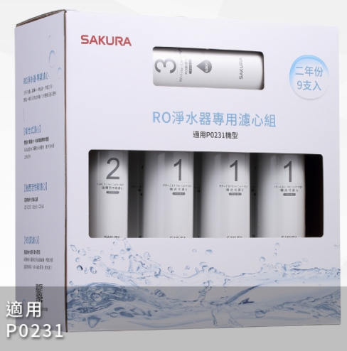 【櫻花 SAKURA】F0196 -RO淨水器專用濾心9支入(P0231二年份) 0