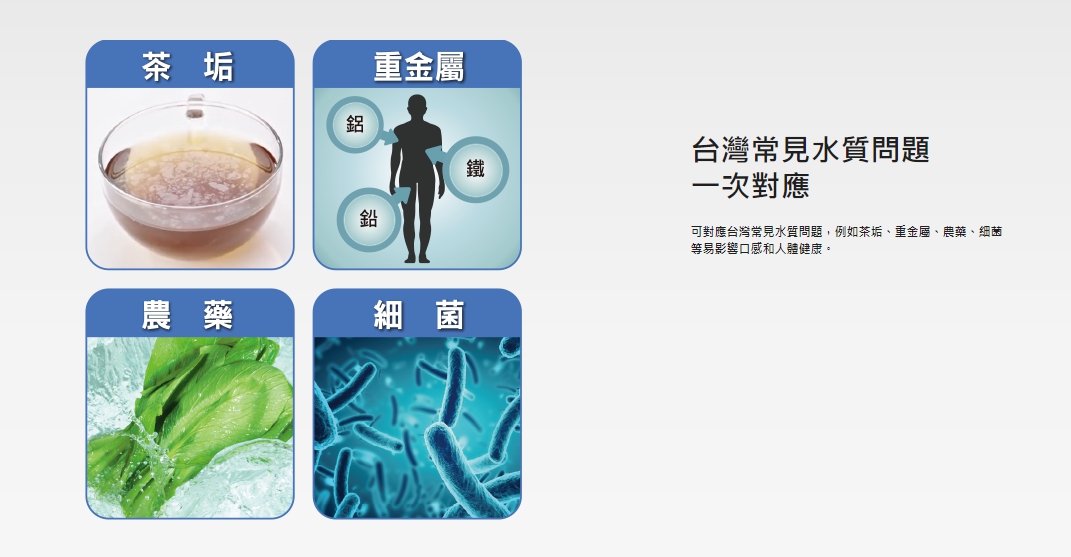 四重濾淨科技,淨水濾淨科技 便利設計,燈號提醒濾芯更換 快拆式濾芯更換容易 無壓龍頭降低滲漏風險 濾芯壽命記憶,斷電不遺失 日本JIS及台灣SGS雙認證