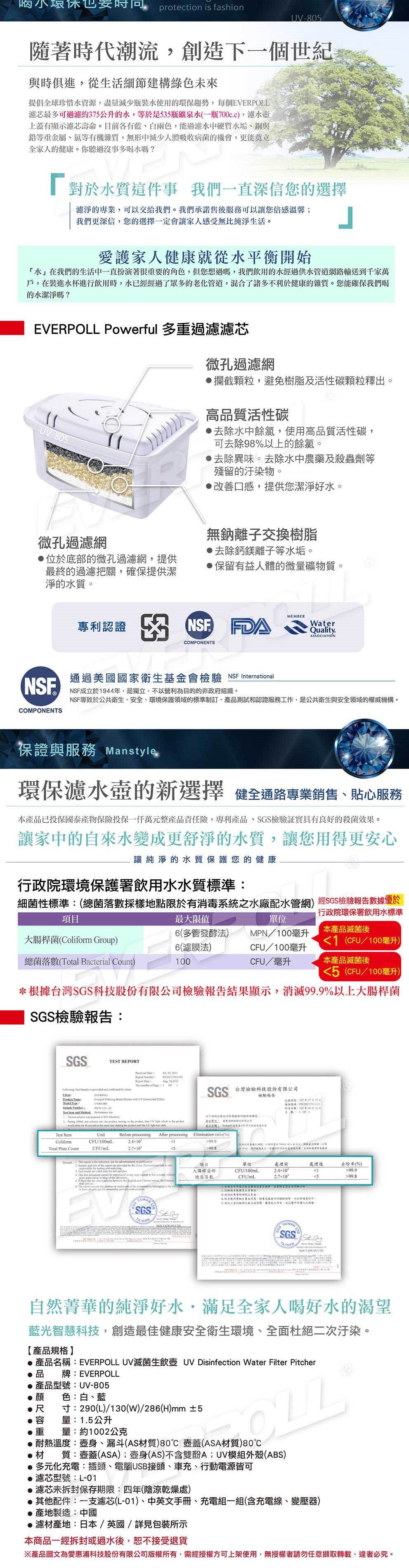 【EVERPOLL 】UV-805 UV滅菌生飲壺 0