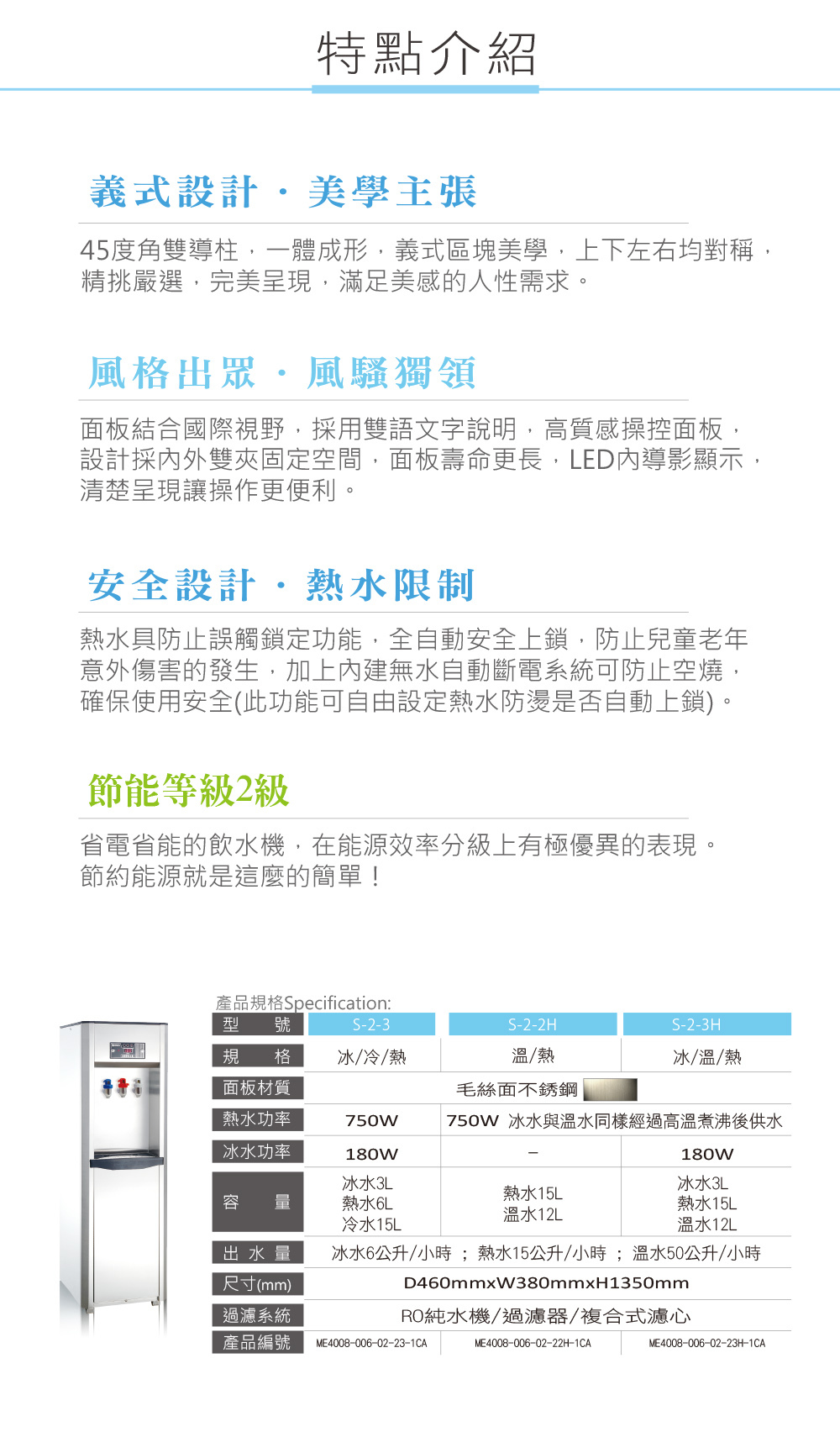 熱水功率:750W 冰水與溫水同樣經過高溫煮沸後供水