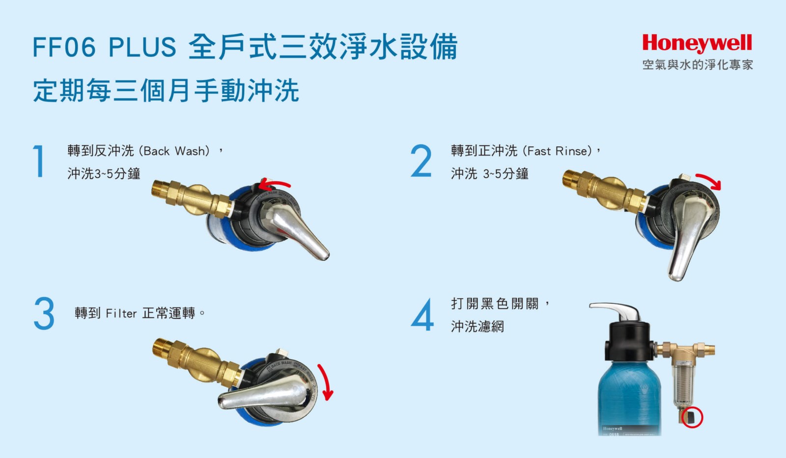 超強濾材壽命,可重複使用不鏽鋼濾網。擁有手動沖洗功能,可延長濾材壽命, 有效濾除泥沙雜質、鐵鏽、其他顆粒雜質、腐化物、除鉛、去除餘氯、 為消費者提供便利智慧純淨健康的家居用水。