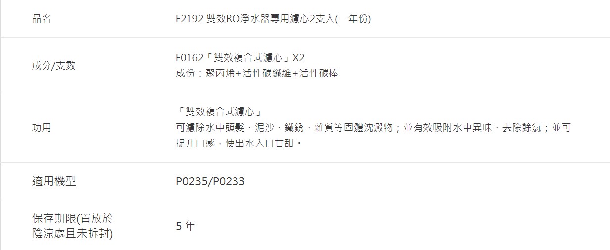 6. 【櫻花 SAKURA】F2192雙效RO淨水器專用濾心2支入(一年份)