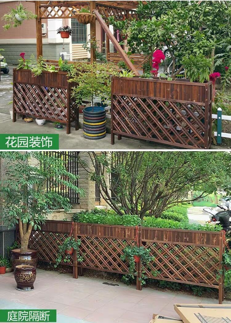 【最低價】【公司貨】隔斷花架戶外花槽碳化網格花箱餐廳木柵欄飯店裝飾花盆架防腐實木 5