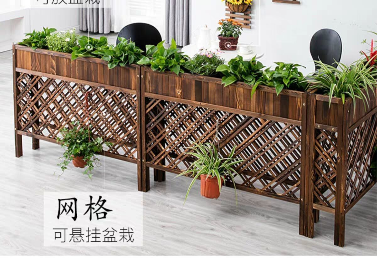 【最低價】【公司貨】隔斷花架戶外花槽碳化網格花箱餐廳木柵欄飯店裝飾花盆架防腐實木 7