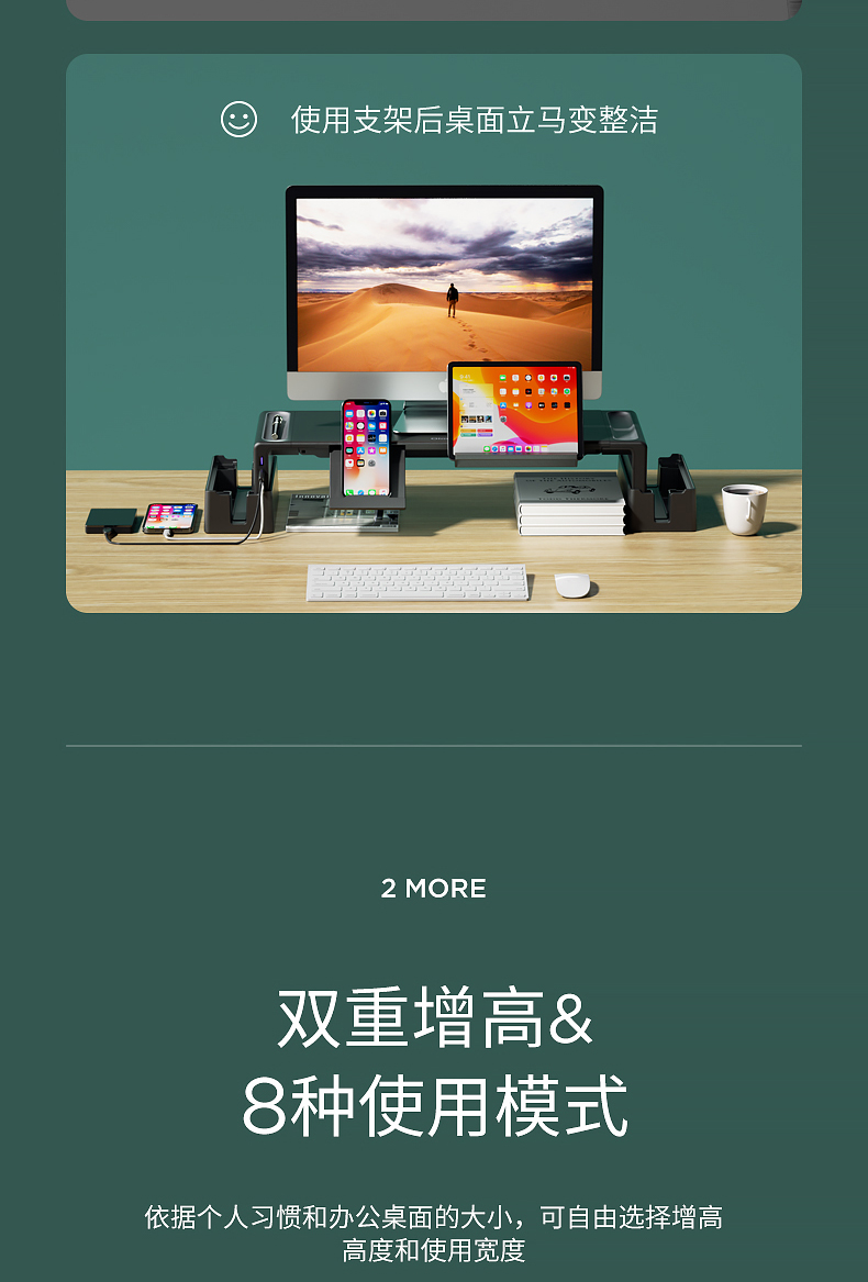 電腦顯示器增高架子usb擴展帶抽屜擴展折疊多功能托架充電辦公室臺式可升降墊高桌面收納筆記本蘋果底座支架 筆電支架 8