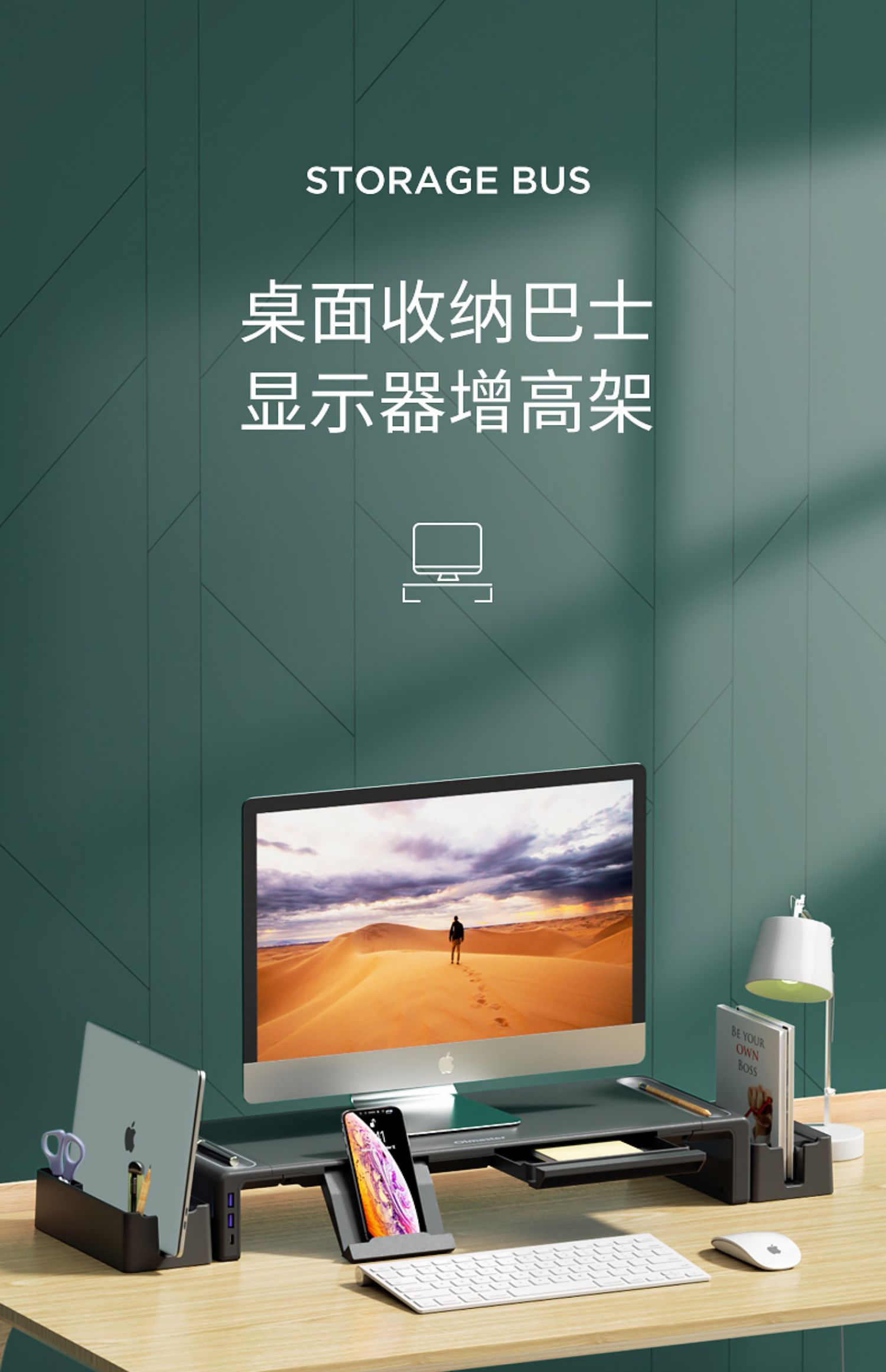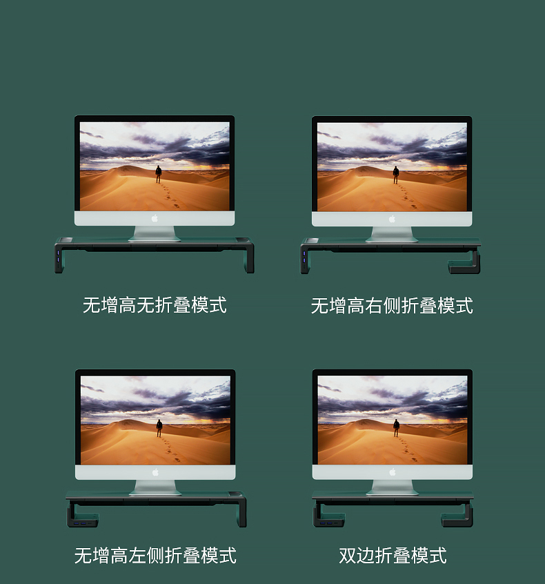 5. 電腦顯示器增高架子usb擴展帶抽屜擴展折疊多功能托架充電辦公室臺式可升降墊高桌面收納筆記本蘋果底座支架 筆電支架