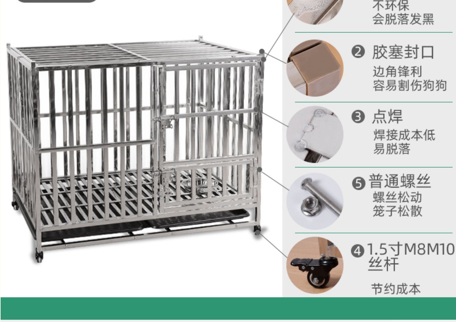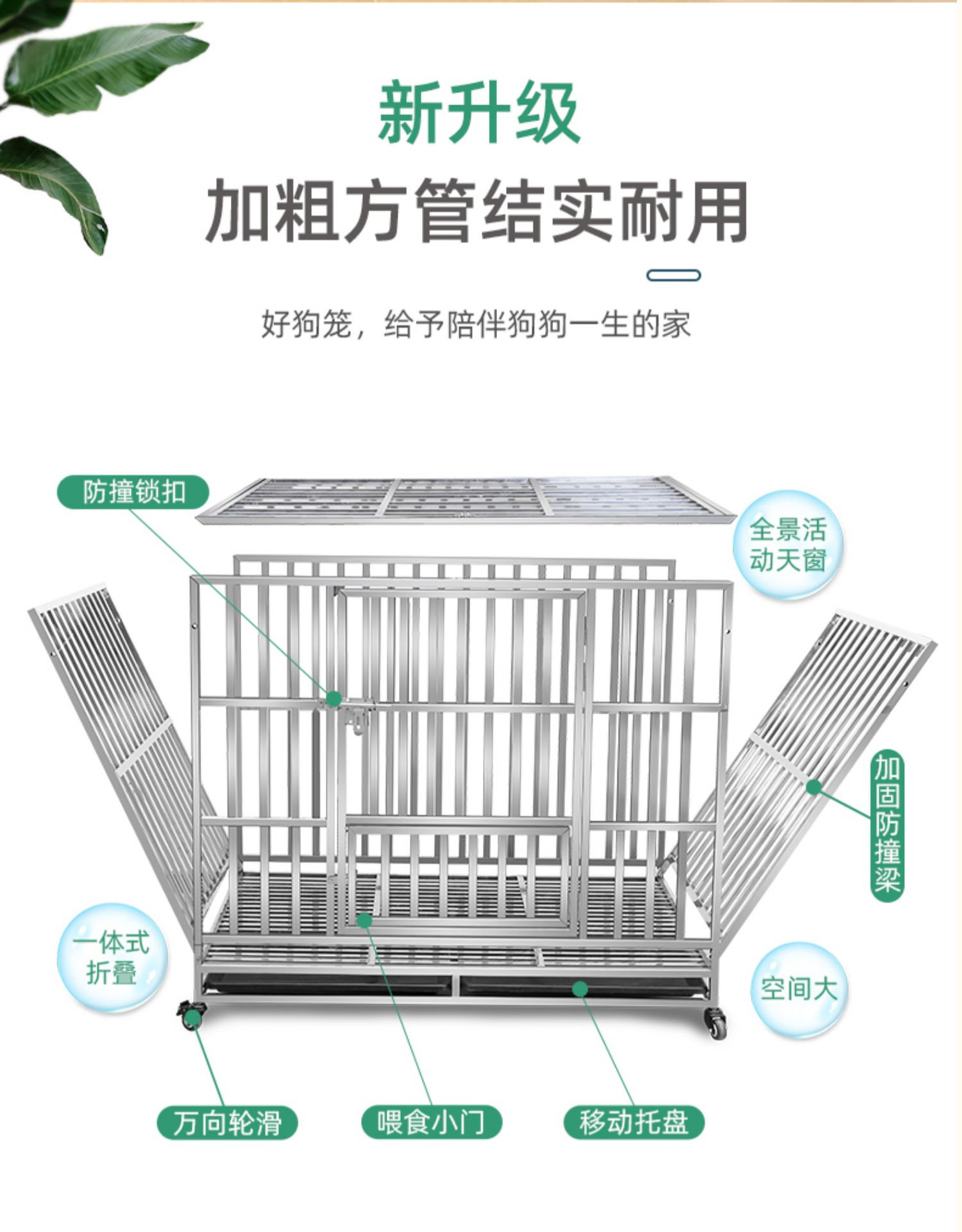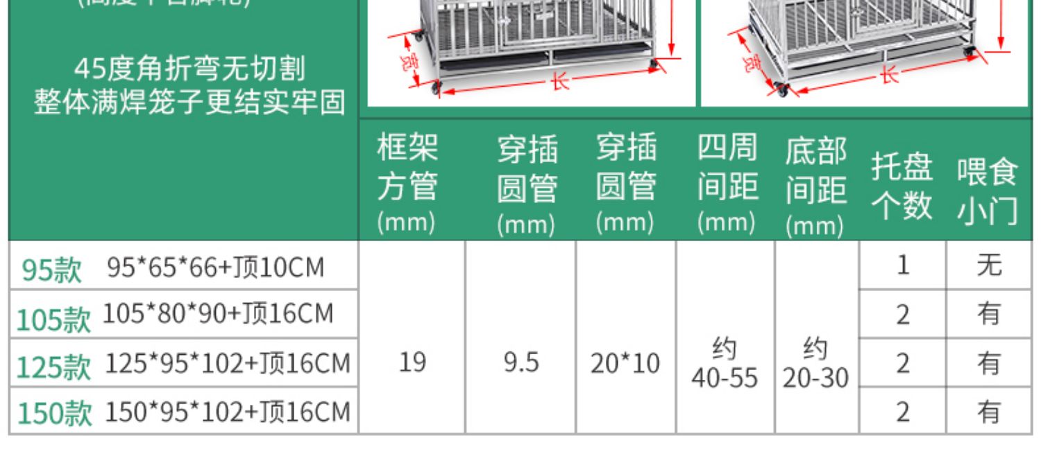 5. 【超多款式咨詢客服】不銹鋼狗籠室內單層帶輪子不銹鋼狗籠中型大型犬304方管狗房加粗