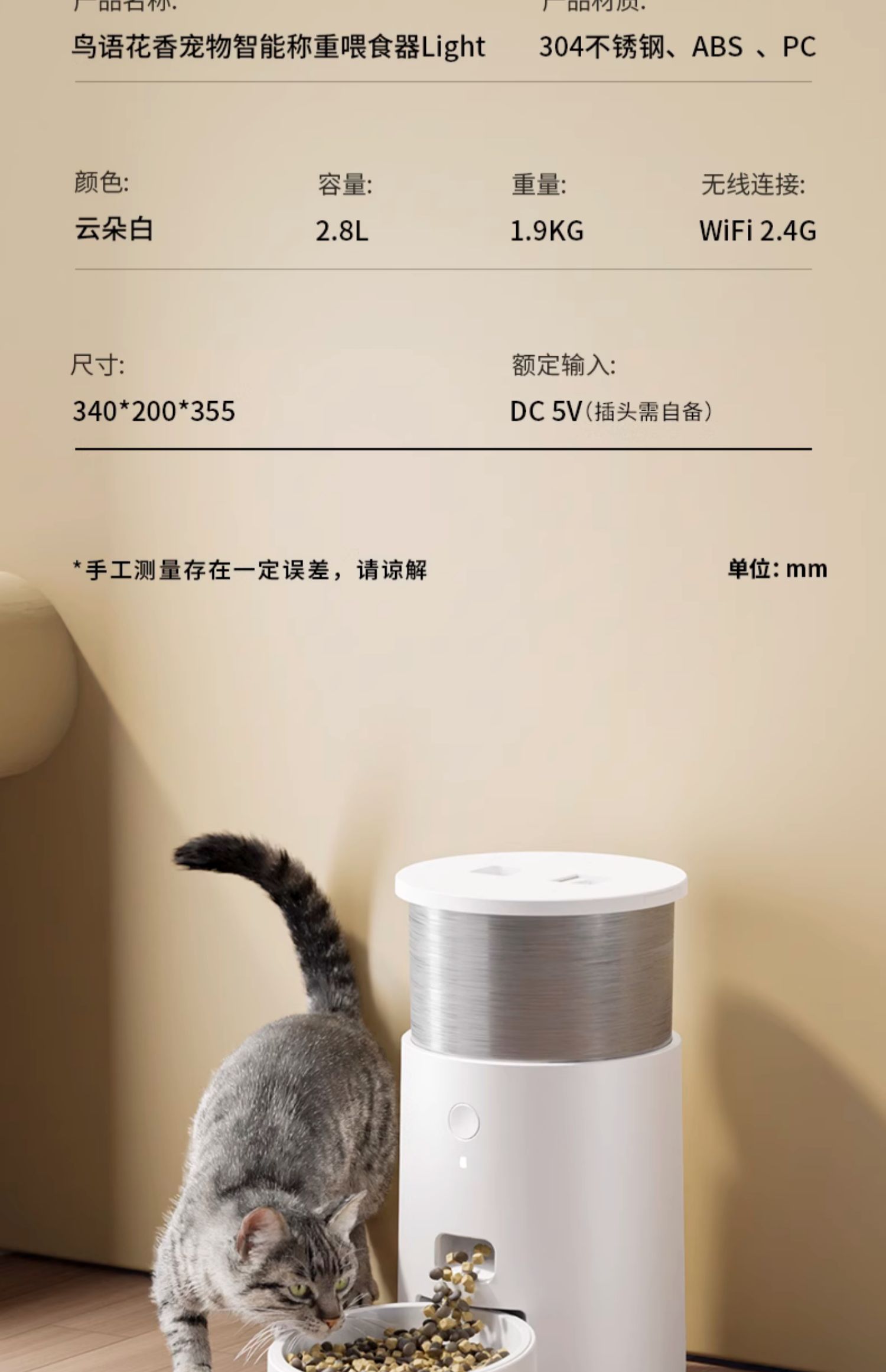 5. 【超多款式咨詢客服】鳥語花香Light智能自動喂食器貓咪寵物定時定量投食機貓狗糧稱重