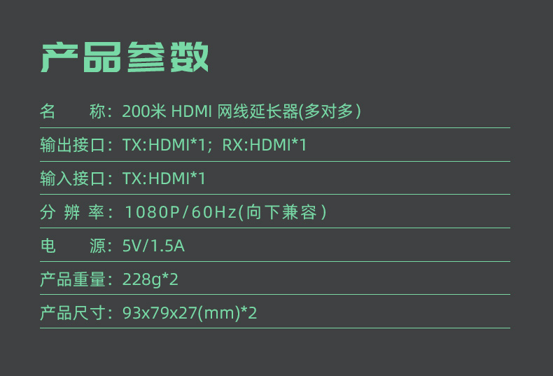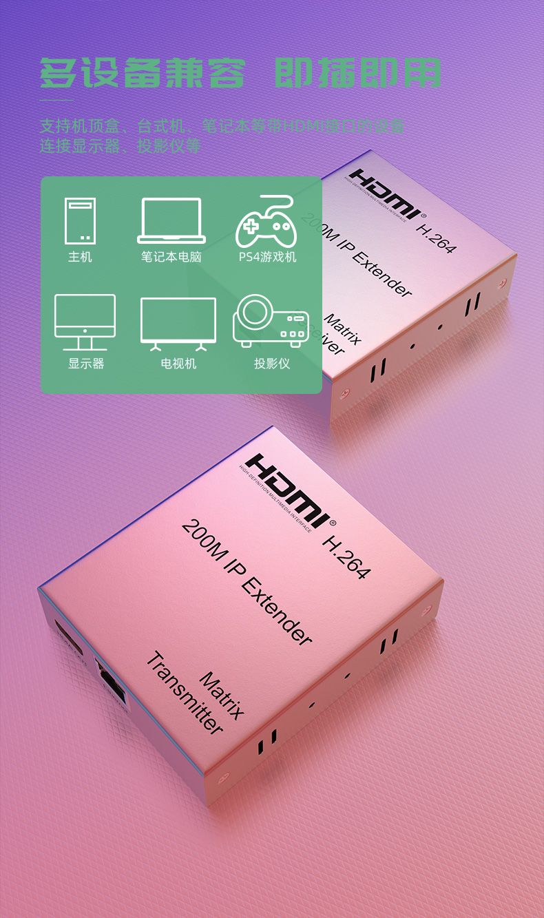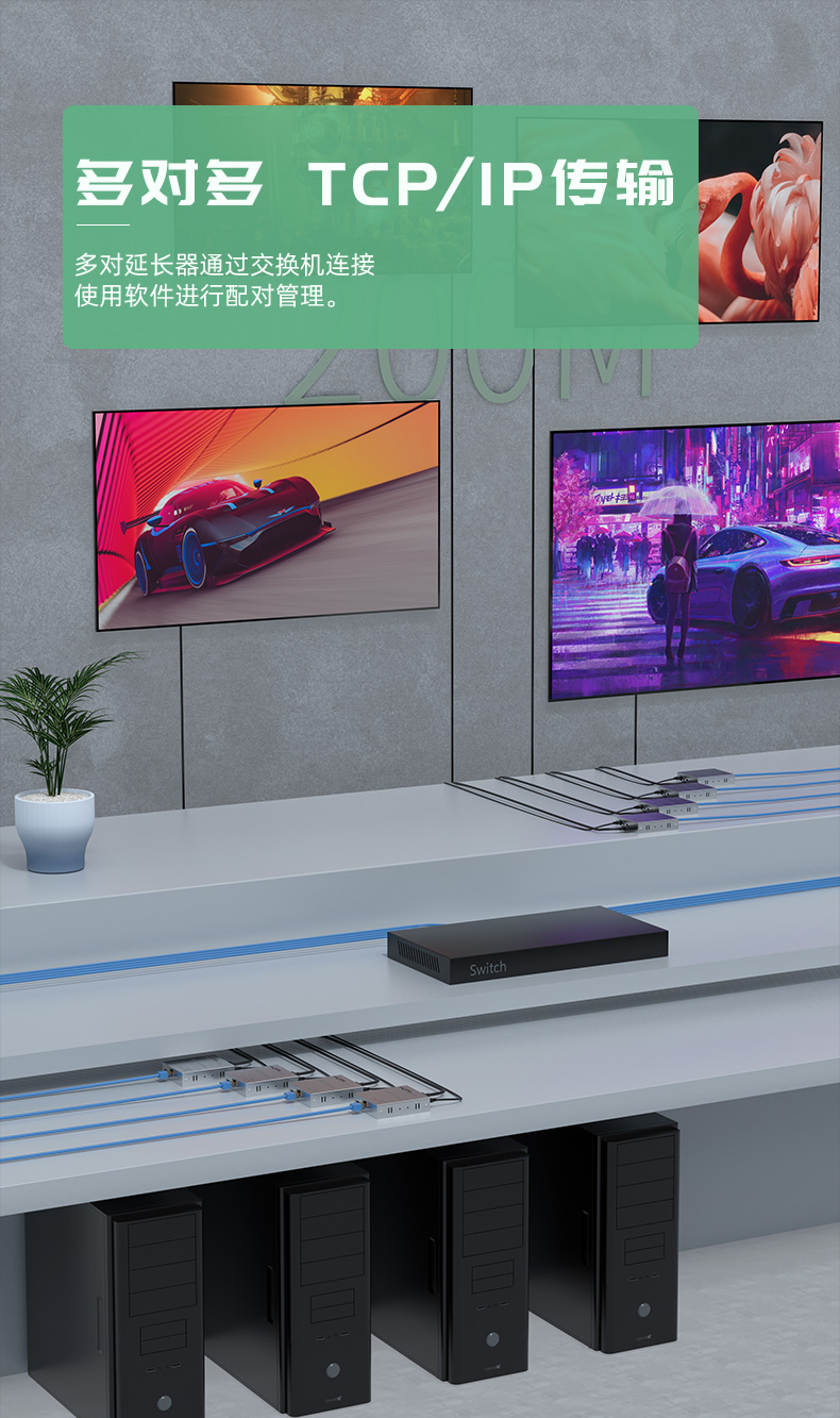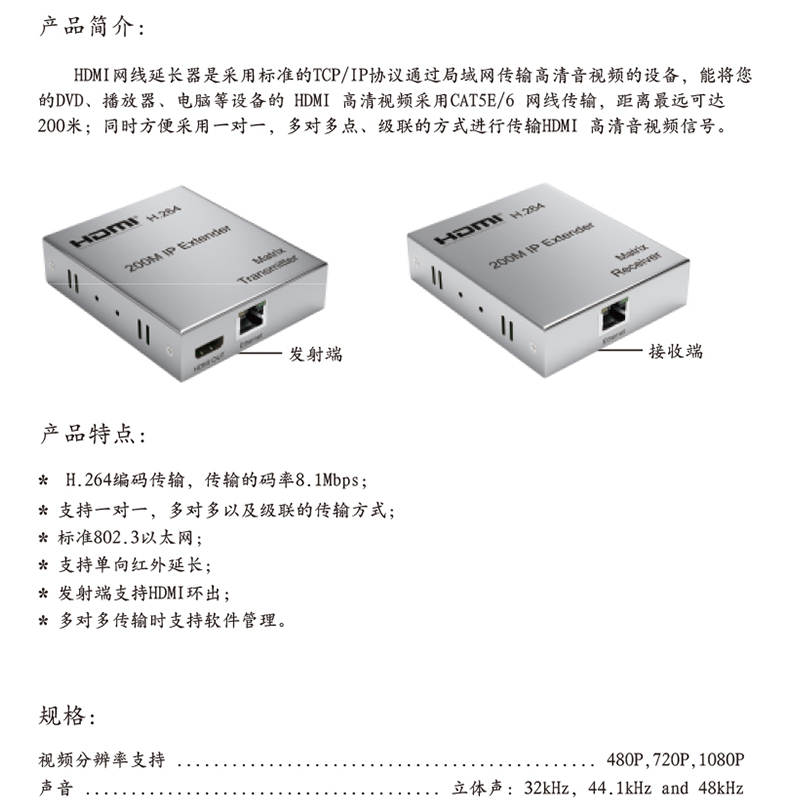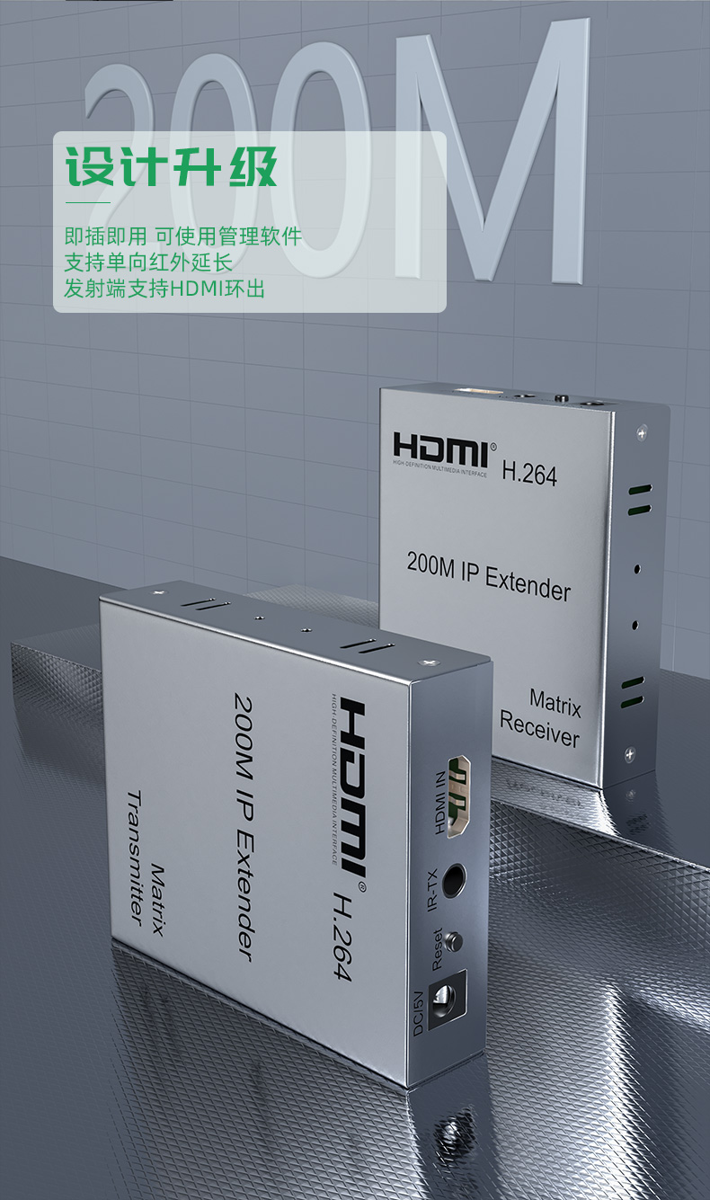 兼容大華海康DVR等多品牌監控硬盤錄像機,監控工程,電腦主機視頻鍵鼠信號延長都可以使用,高清 200米 HDMI-USB網線延長器,支持交換機,一發多收,可只用四芯網線,一條網線即可上網也能傳監控音視頻