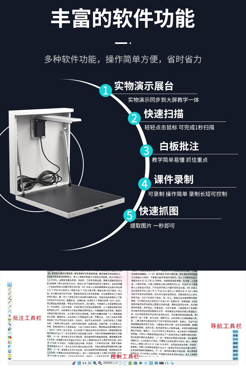 5. 【最低價】【公司貨】壁掛實物展臺教學高拍儀高清800萬1300萬像素視頻展臺實物投影儀