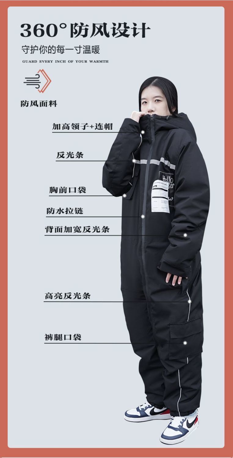 5. 【最低價】【公司貨】冬季騎行防寒服騎車連體擋風衣加厚防雨電動車擋風被冬款保暖棉服