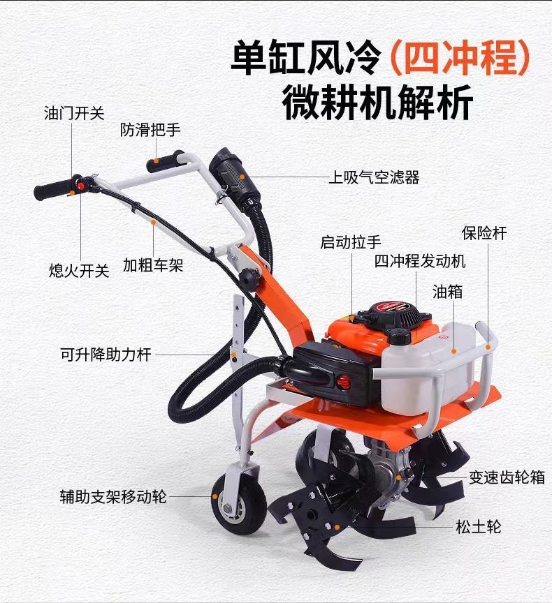 5. 【最低價】【公司貨】微耕機小型開溝松土機汽油多功能農用耕地機果園除草旋耕機翻地器