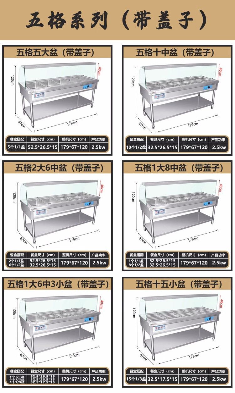 5. 【最低價】【公司貨】快餐保溫臺商用玻璃罩加熱餐廳快餐車打菜湯池恒溫節能保溫售飯臺