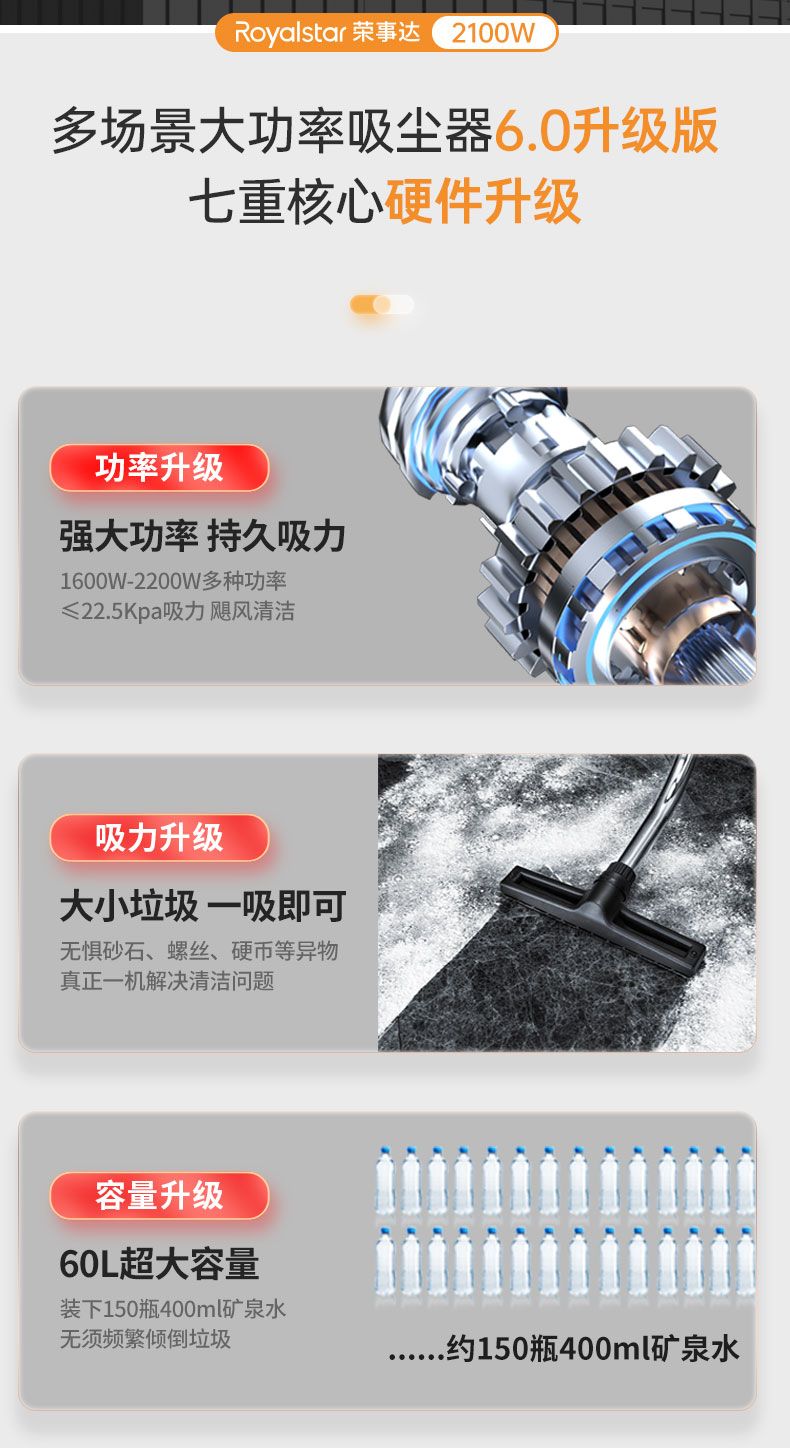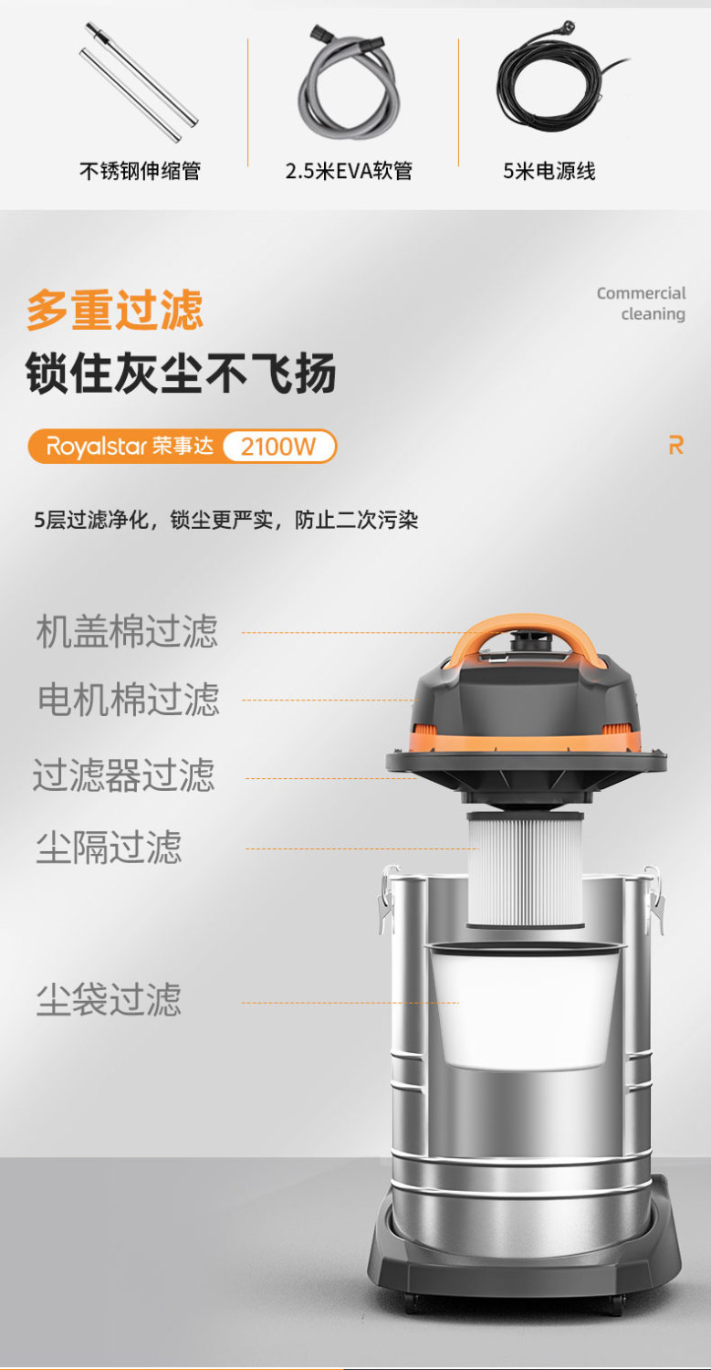 5. 【詢價有驚喜】榮事達工業吸塵器家庭酒店大功率大吸力干濕吹商用車用美縫吸塵