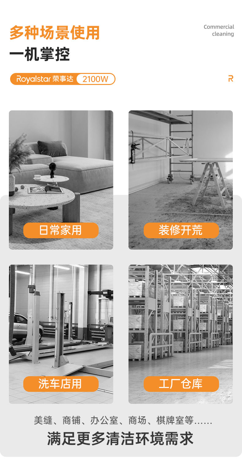 【詢價有驚喜】榮事達工業吸塵器家庭酒店大功率大吸力干濕吹商用車用美縫吸塵 6